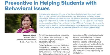 In this article, Andria Amador, Senior Director of BHS, makes the case for adopting a more proactive and preventive approach to behavioral health supports for students in schools.